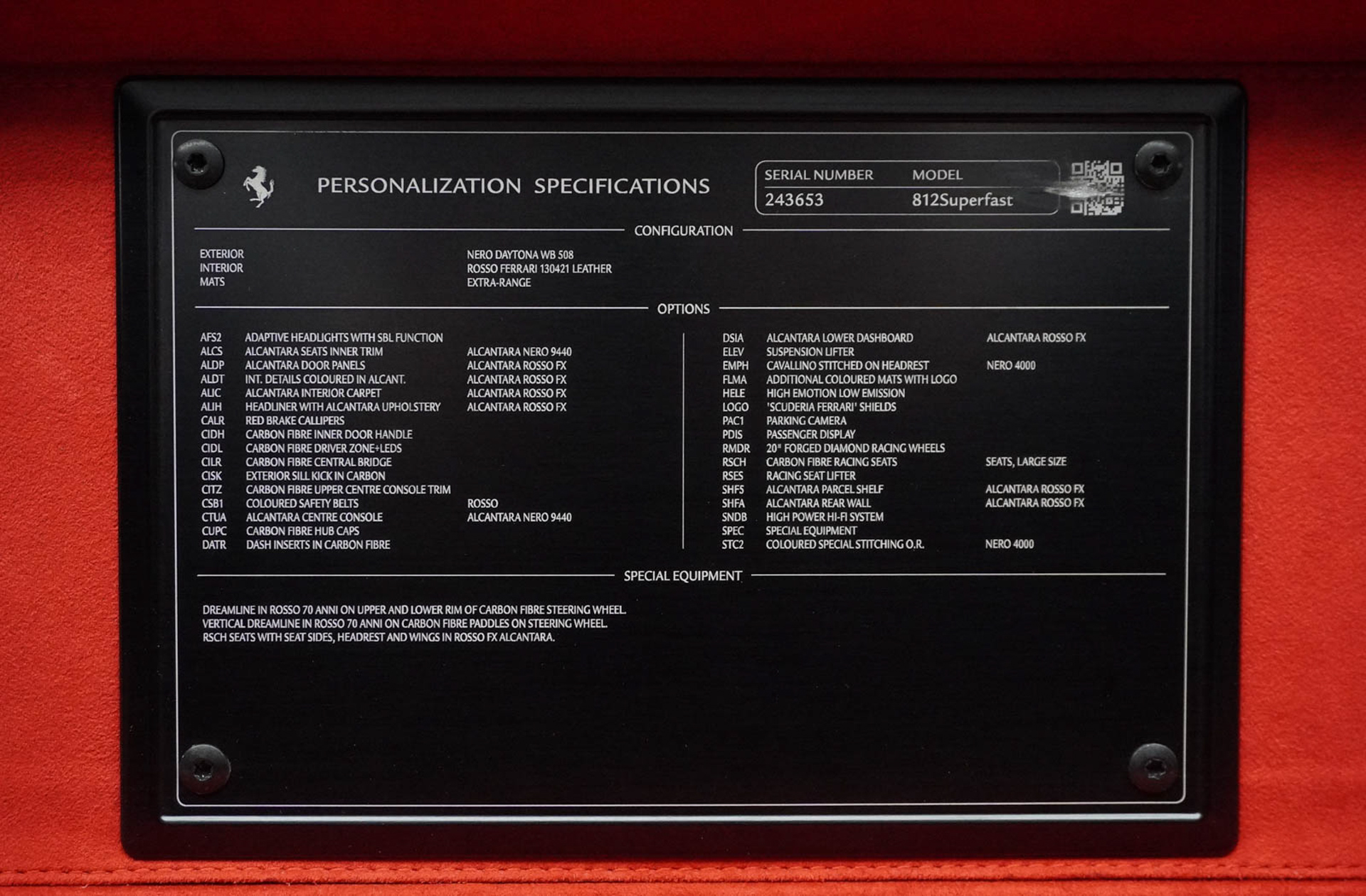 • Linie decorativă „Dreamline” Rosso 70 Anni pe volan carbon
